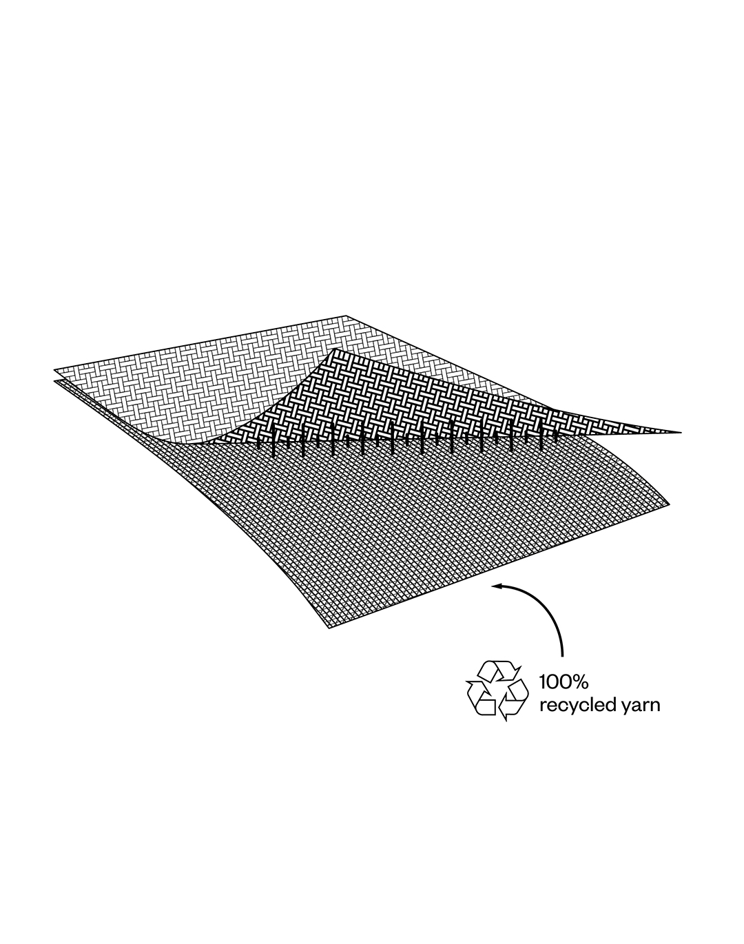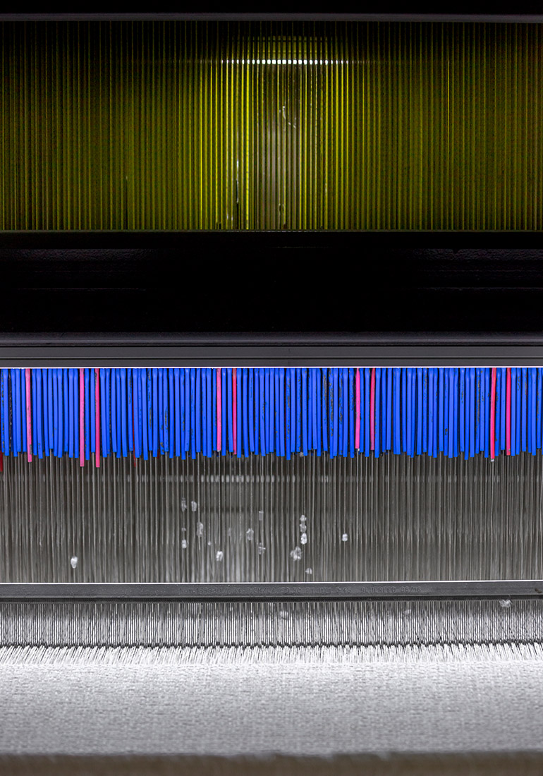 The fabrics of the recycled collection are double-woven. Double-weaving is a constructional method meant to make a fabric more durable. The technique of double-weaving makes it possible to reutilize our textile waste for the backside of new fabric while maintaining a truly high quality.
