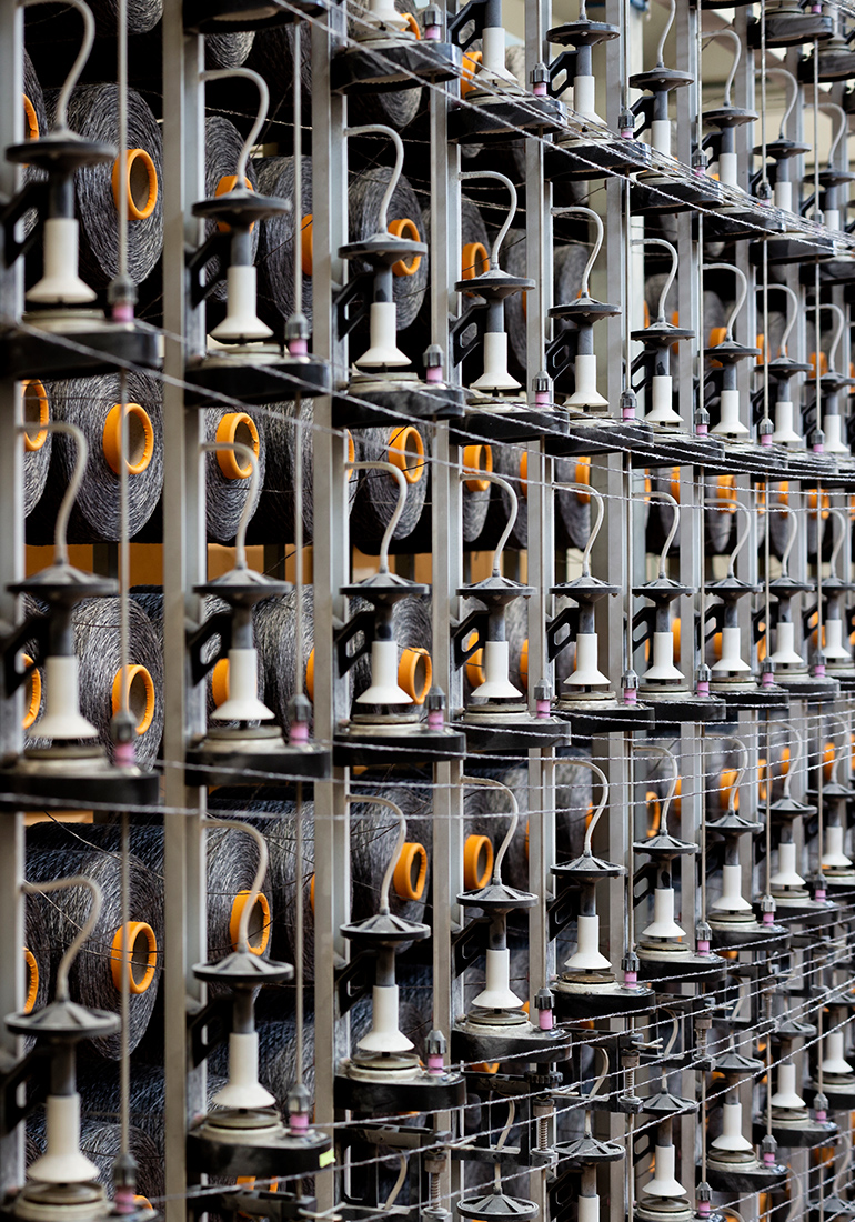 Thanks to this method of double-weaving, the fabrics of this collection contain a high percentage of recycled materials (including “closed loop” recycled fiber) without compromising quality.